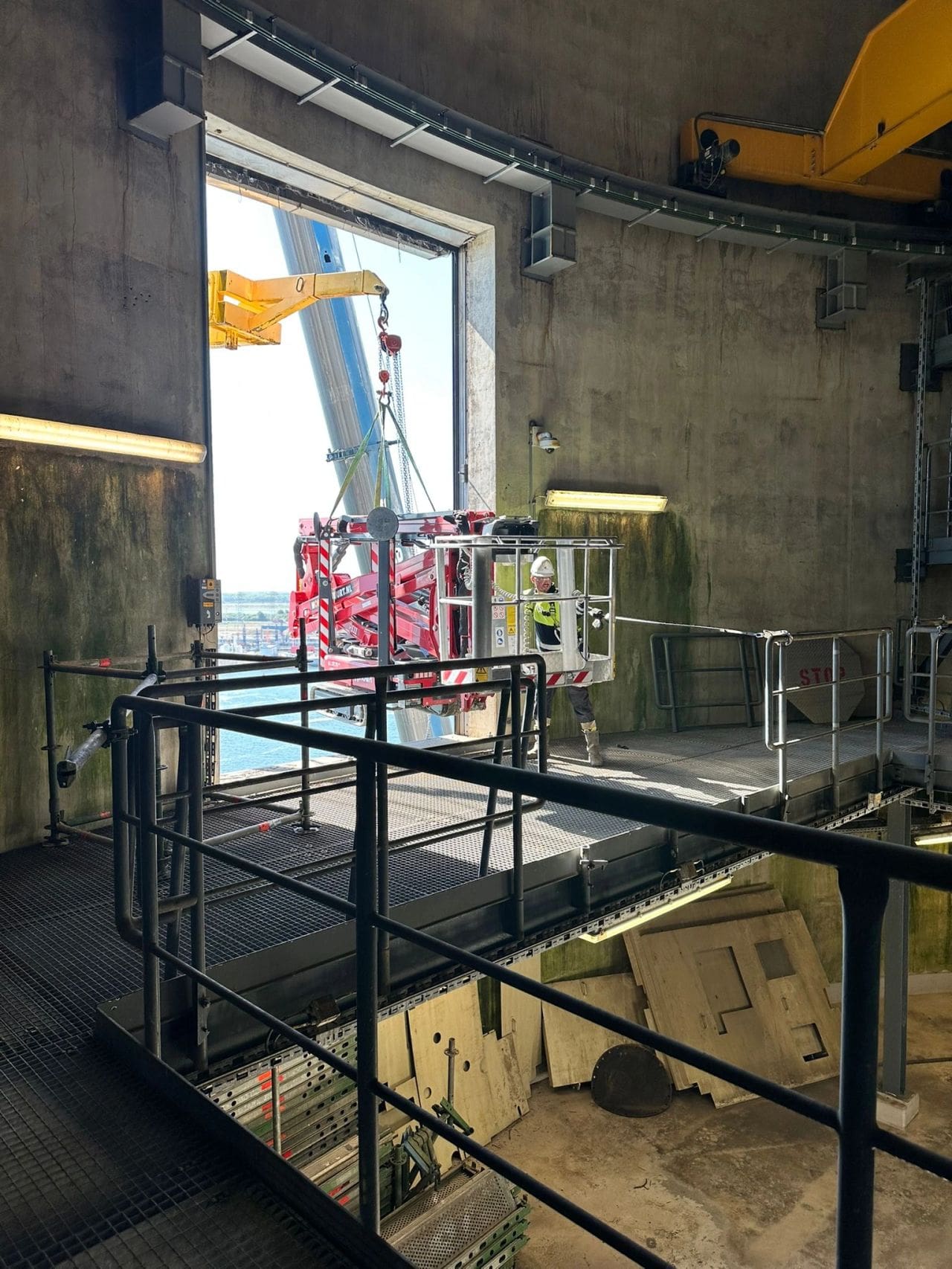 In opdracht van ECRANES werden de hoogwerkers maar liefst 60 meter hoog in een silo gehesen om daar onderhoudswerkzaamheden aan een kraan mogelijk te maken.