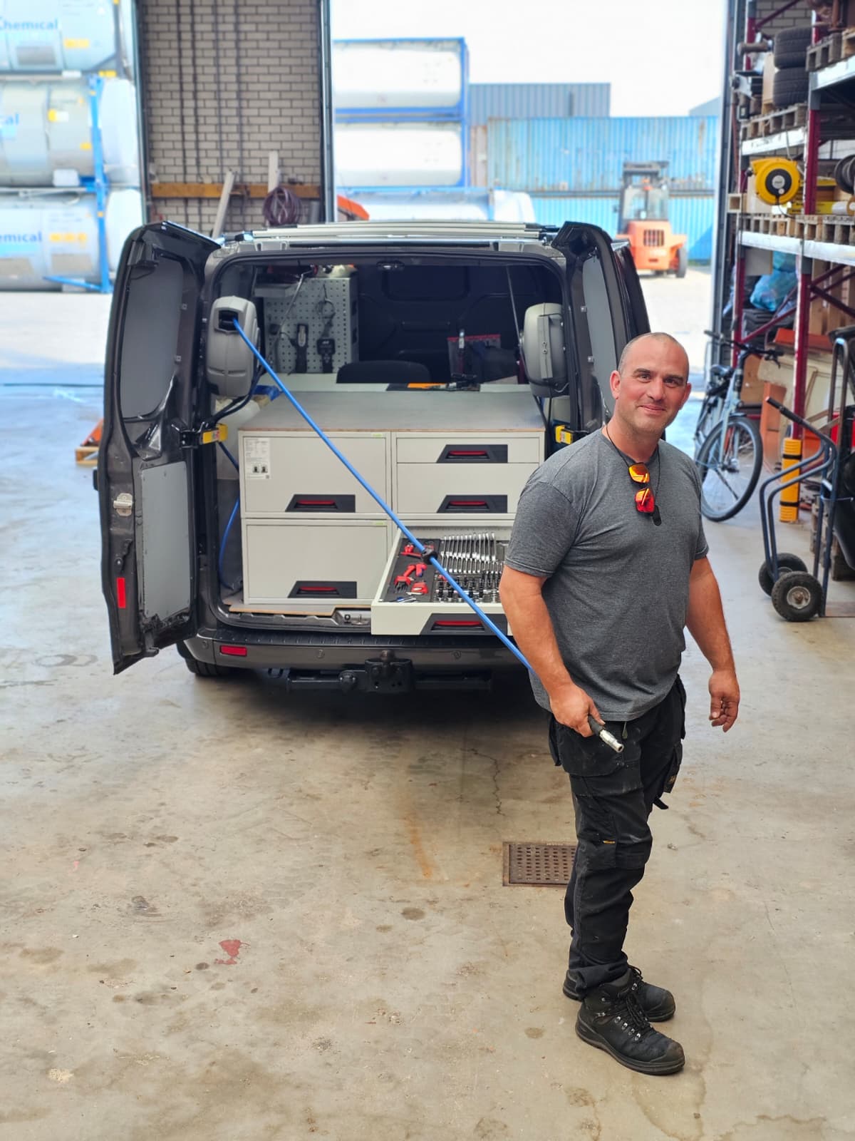 Onze monteurs staan paraat om problemen direct op locatie op te lossen. Zo heeft servicemonteur Sebastiaan onlangs zijn nieuwe servicebus in gebruik genomen โ helemaal ingericht volgens zijn eigen ontwerp.