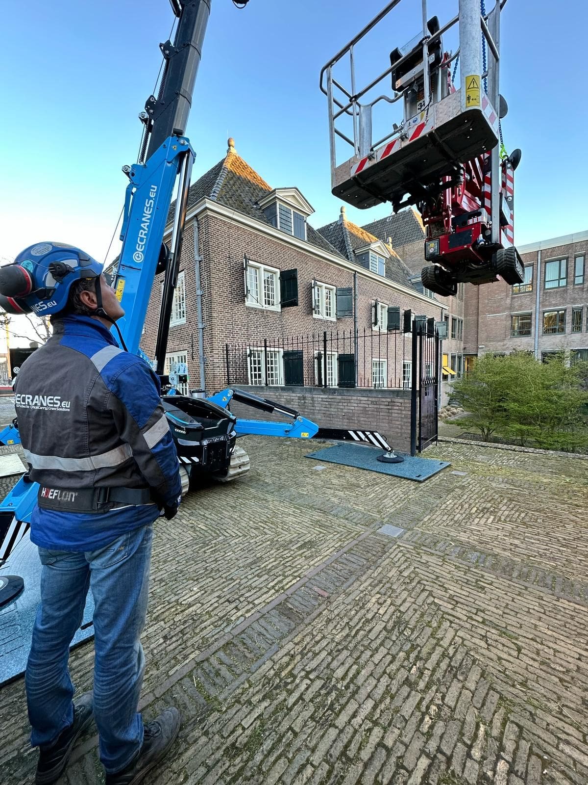 Voor een bijzondere klus van Decolux Projectzonwering stonden we voor een uitdaging: er was geen ruimte voor een kraanauto! Toch moest de Hinowa Spa 17.75 in een binnentuin komen. De oplossing? Slim hijswerk met een Hoeflon C30, vakkundig uitgevoerd door de mannen van ECRANES.