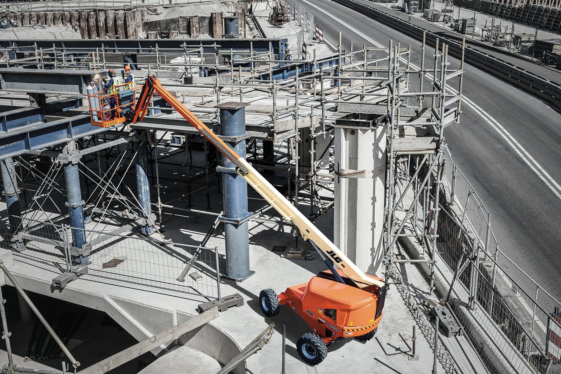 JLG 460SJ HC3 telescoophoogwerker kent een maximale werkhoogte van 16 meter met een horizontaal bereik van 11,89 meter.